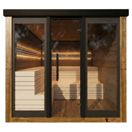 Deluxe Panorama Glass Traditional Outdoor Luxury Sauna - 6 Person
