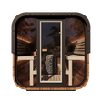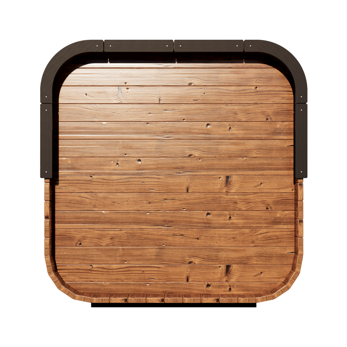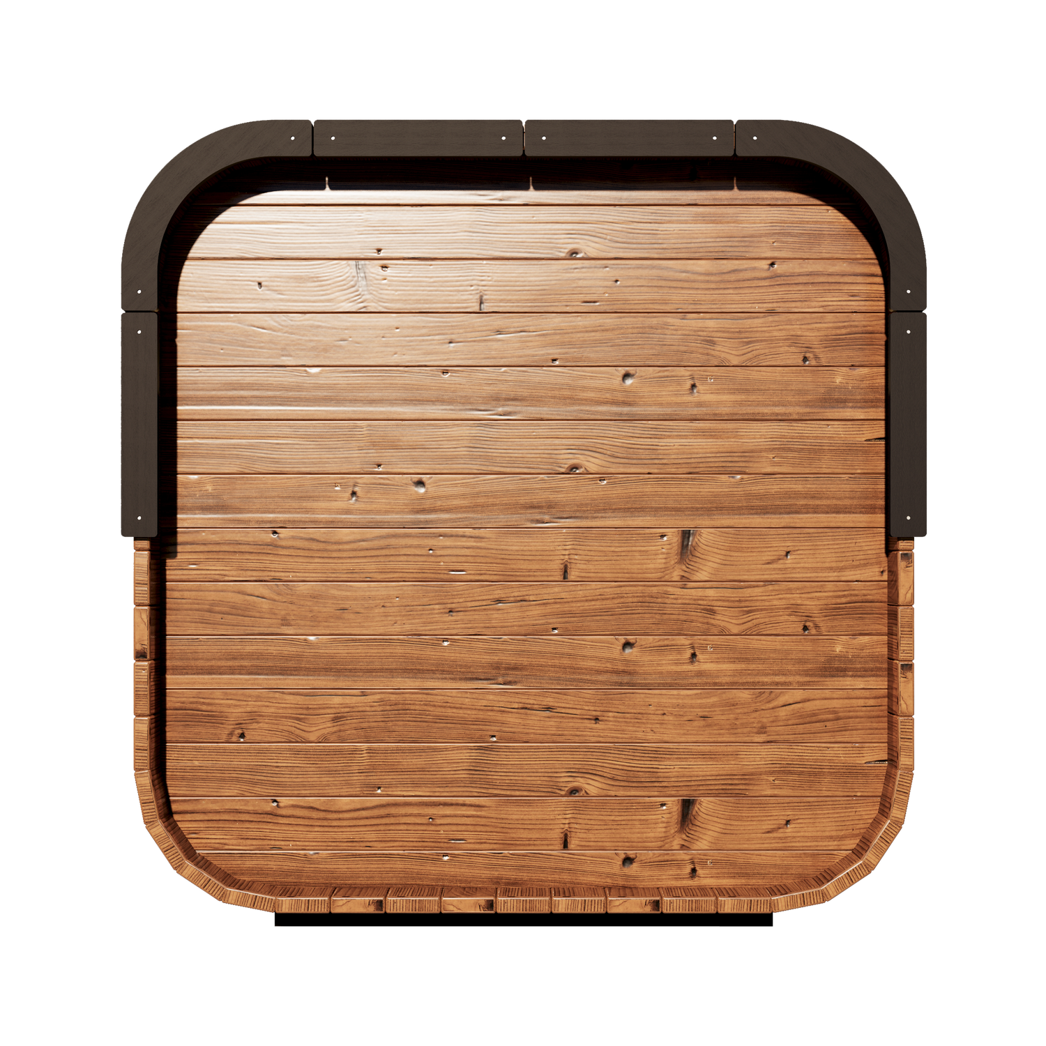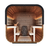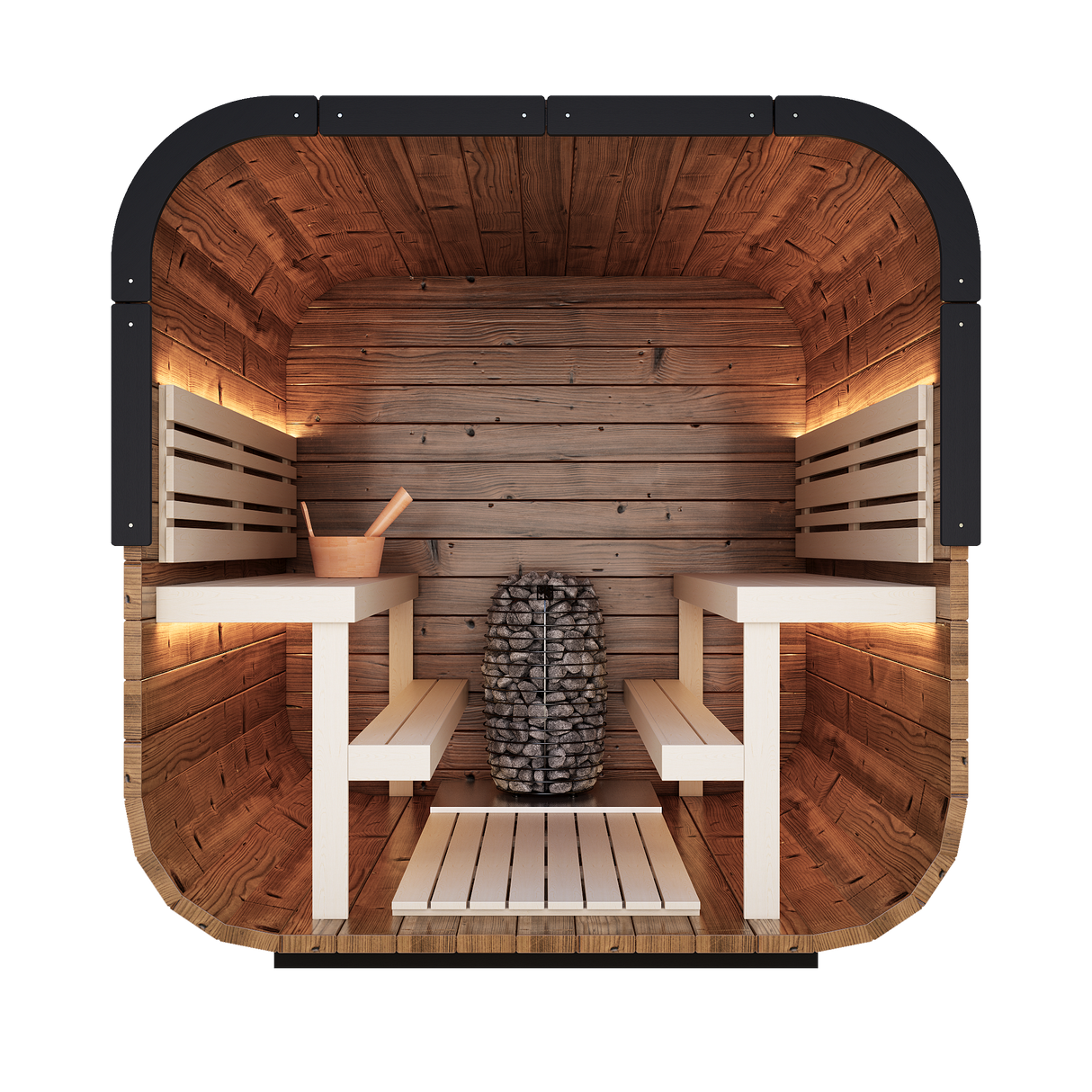 The front glass version of our largest Governor series sauna, the Grand Governor, offers even more space to unwind, comfortably accommodating up to 6 people. Its modern cube design, crafted from thermally modified wood and paired with a durable roof kit, ensures superior heat retention and all-weather durability. The sleek, curved edges and stunning full front glass wall create a seamless blend of modern elegance and organic warmth, making it a striking addition to any indoor or outdoor space.