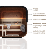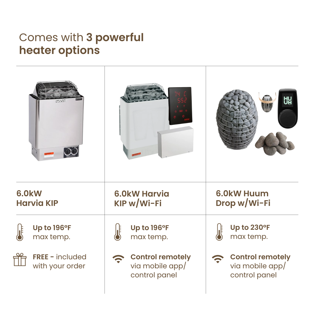 • All of our saunas are delivered as DIY kits, meaning they arrive unassembled and do not include installation services. Please reach out to sales if you have any questions regarding installation or need references for installers in your area.