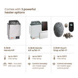 • Harvia Electric Heater: 1-year warranty on the heating elements, 2-year warranty on Xenio control units, and a 5-year warranty on the other components.